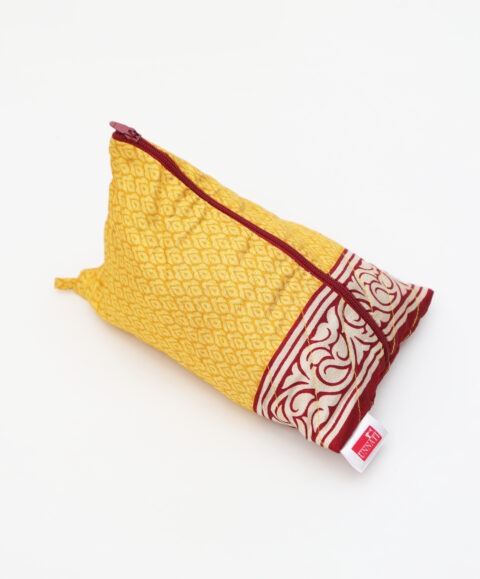 Each pouch is made from repurposed fabric bringing unique print and color to each piece.